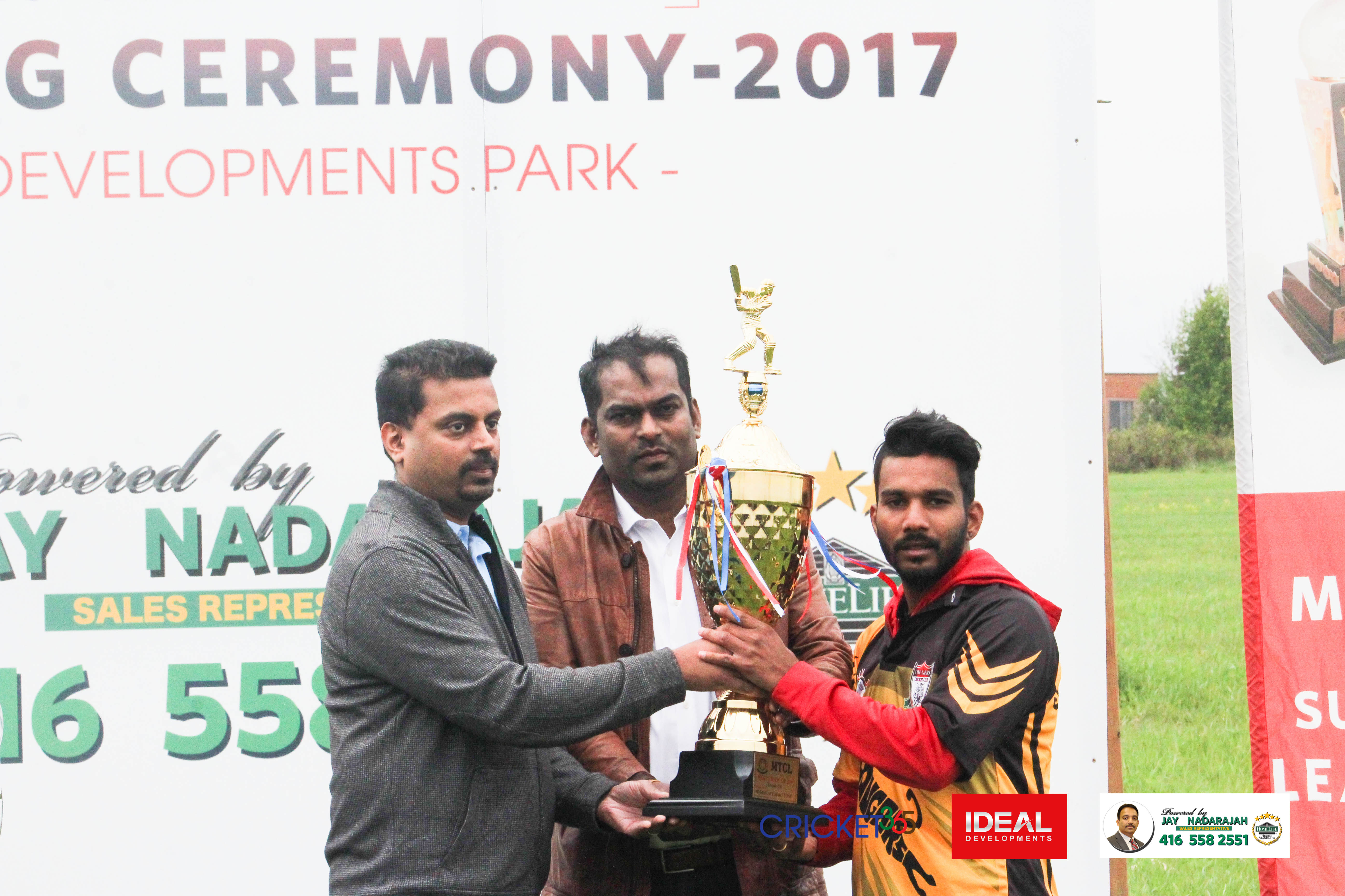 அடுத்ததாக சென்ற ஆண்டின் ஜெய்சுரேஷ் ஜெகநாதன்(JEYSURESH JEGANATHAN)னால் அனுசரணை செய்யப்பட்ட SUPER LEAGUE CHALLENGE TROPHY, மற்றும் ரீமஸ்(Re/Max Ace Realty Inc.) நிறுவன முகவர்களாக சுரேஷ் பரமலிங்கம்(Suresh Paramalingam) மற்றும் ரதீஸ் பரமலிங்கம்(Rathees Paramalingam) னால் அனுசரணை செய்யப்பட்ட முதலாம் இட அணி ஆகிய இரு கேடயங்களையும் வெற்றிபெற்ற Cougars அணியின் தலைவர் தர்ஷன் ரத்னசபாபதி(Tharshan Ratnasapabathy) அவர்கள் தமது கேடயங்களையும் MTCL அமைப்பிடம் வழங்கியதோடு தமக்குரிய கேடயங்களையும் பெற்றுச்சென்றார். இந்நிகழ்வின் இறுதி அம்சமாக ஒவ்வொரு அணியினரின் குழு புகைப்படம் எடுக்கபட்டது. இந்நிகழ்ச்சி சிறப்புற நடைபெற உதவிய அனைத்து நல்லுள்ளங்களுக்கும் MTCL அமைப்பினர் தமது நன்றியை தெரிவிக்கின்றனர்.