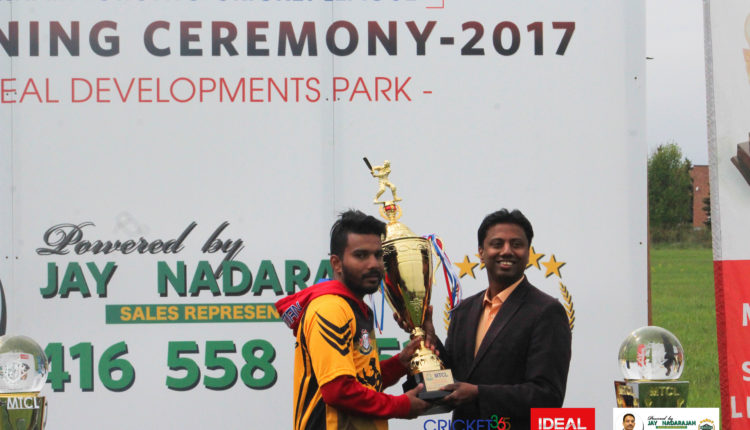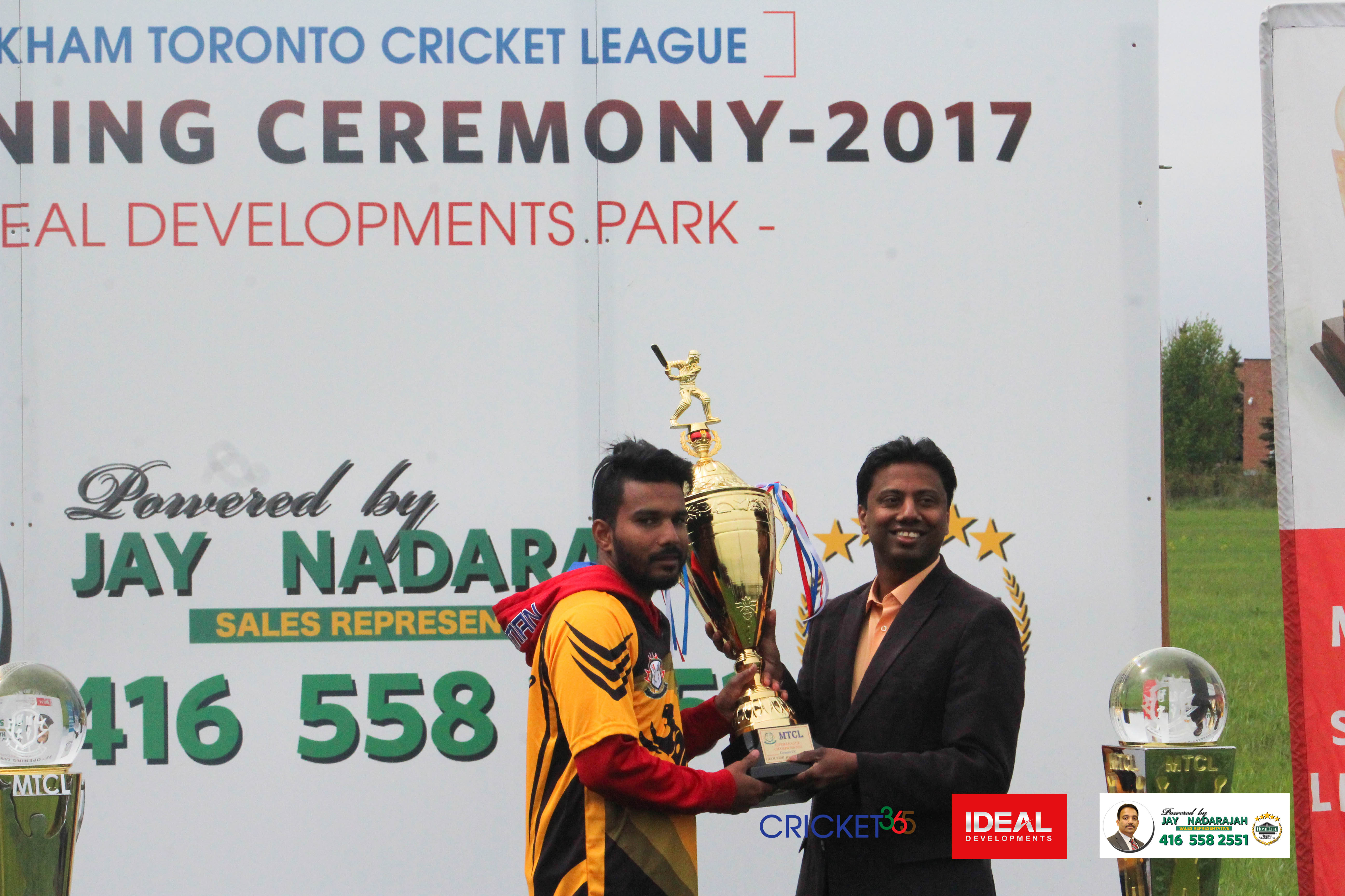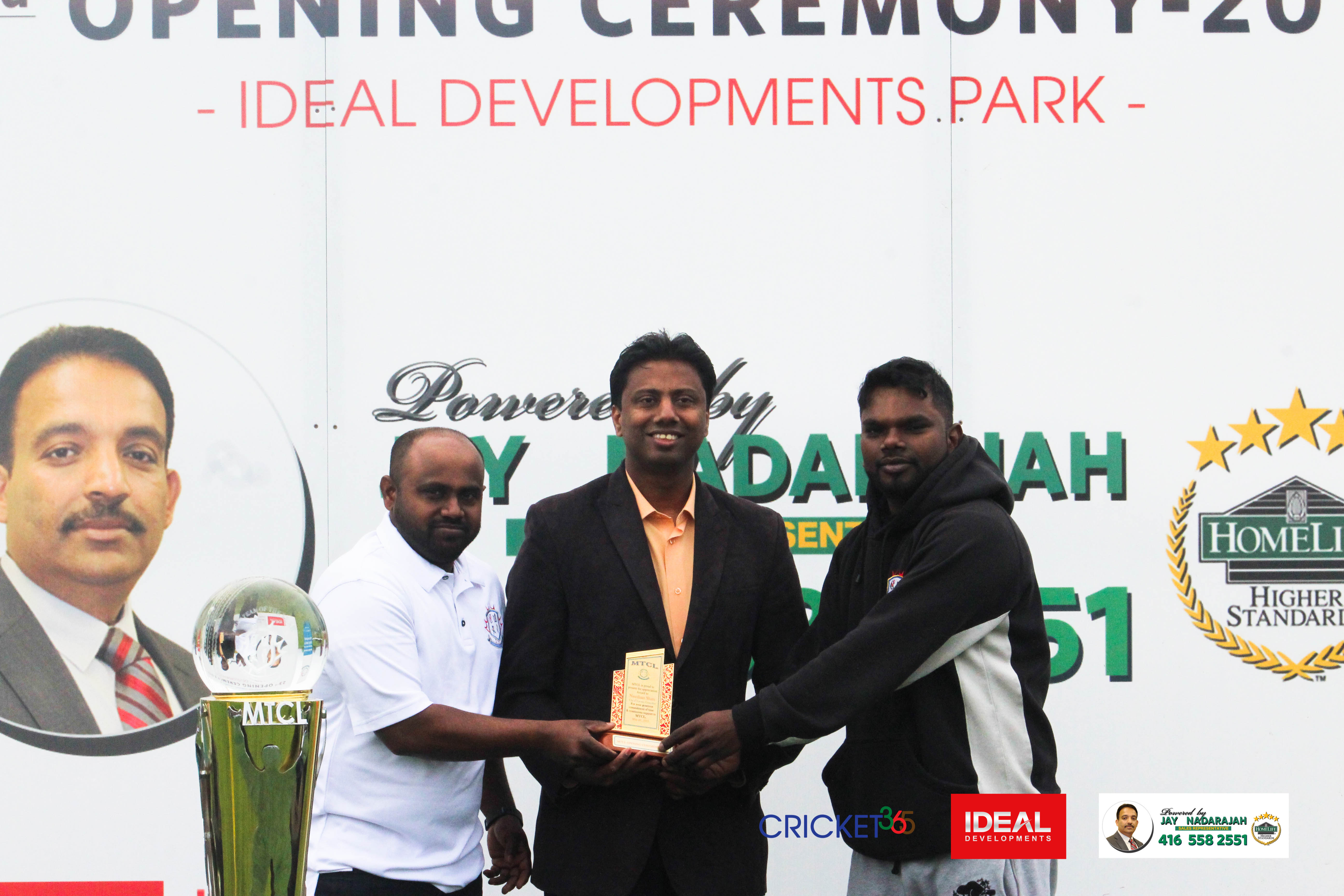 அடுத்த நிகழ்வாக 2016 ஆண்டின் MOST VALUABLE PLAYER(MVP)ரான Youngstars அணியை சேர்ந்த அரவிந்தன் சுந்தரலிங்கம்(Aravinthan Suntharalingam)க்கு மெகா பைனான்சியல் காப்புறுதி முகவர்(Mega Financial Insurance Broker), மற்றும் MVP JACKETன் அனுசரணையாளருமான ஜெய் நடராஜா(Jay Nadarajah)னால் MVP Jacket அணிவிக்கப்பட்டு கௌரவிக்கப்பட்டது. அதன் பின்பு 2016ம் ஆண்டில் அதிக ஓட்டங்களை பெற்ற வீரரான Cougars அணியை சேர்ந்த தர்ஷன் ரத்னசபாபதி(Tharshan Ratnasapabathy)க்கு செம்மஞ்சள்(ORANGE)நிறத்தொப்பி(CAP)யும், அதிக ஆட்டமிழப்புகளைச் செய்த வீரரான கல்வியன்காடு ஞானபாஸ்கரோதய சங்கம்(GPS) அணியை சேர்ந்த சசிக்குமரன் சண்முகராஜா(Sasikumaran Shanmugarajah)க்கு ஊதா(PURPLE)நிறத்தொப்பி(CAP)யும் வழங்கி கௌரவிக்கப்பட்டது.